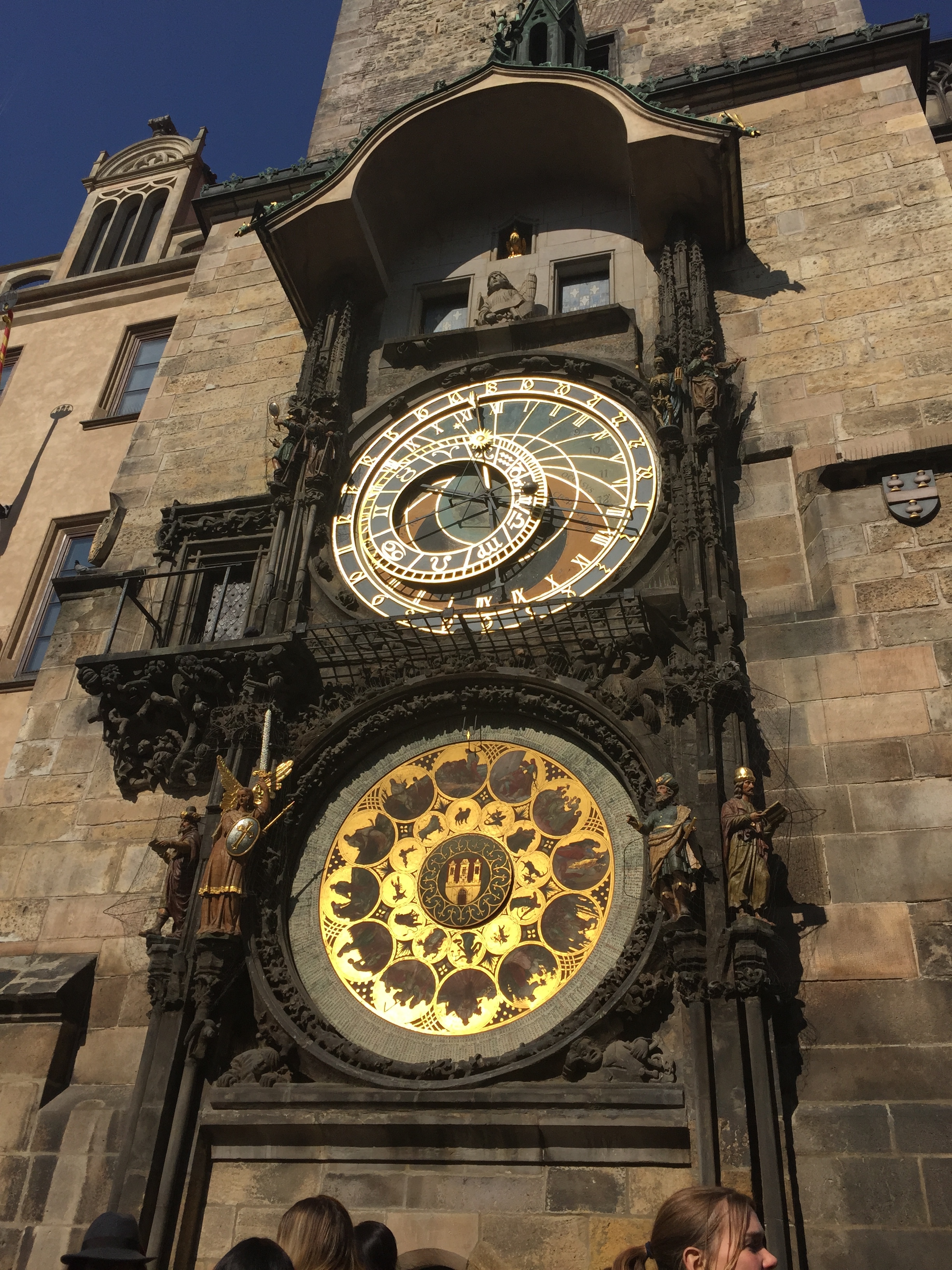 the Astronomical clock: built over 600 years ago and still working.. at the top of every hour, death rings his bell and the three men to the left turn their heads, the twelves apostles come walking about then the rooster at the top shakes his feathers and let’s out a caw