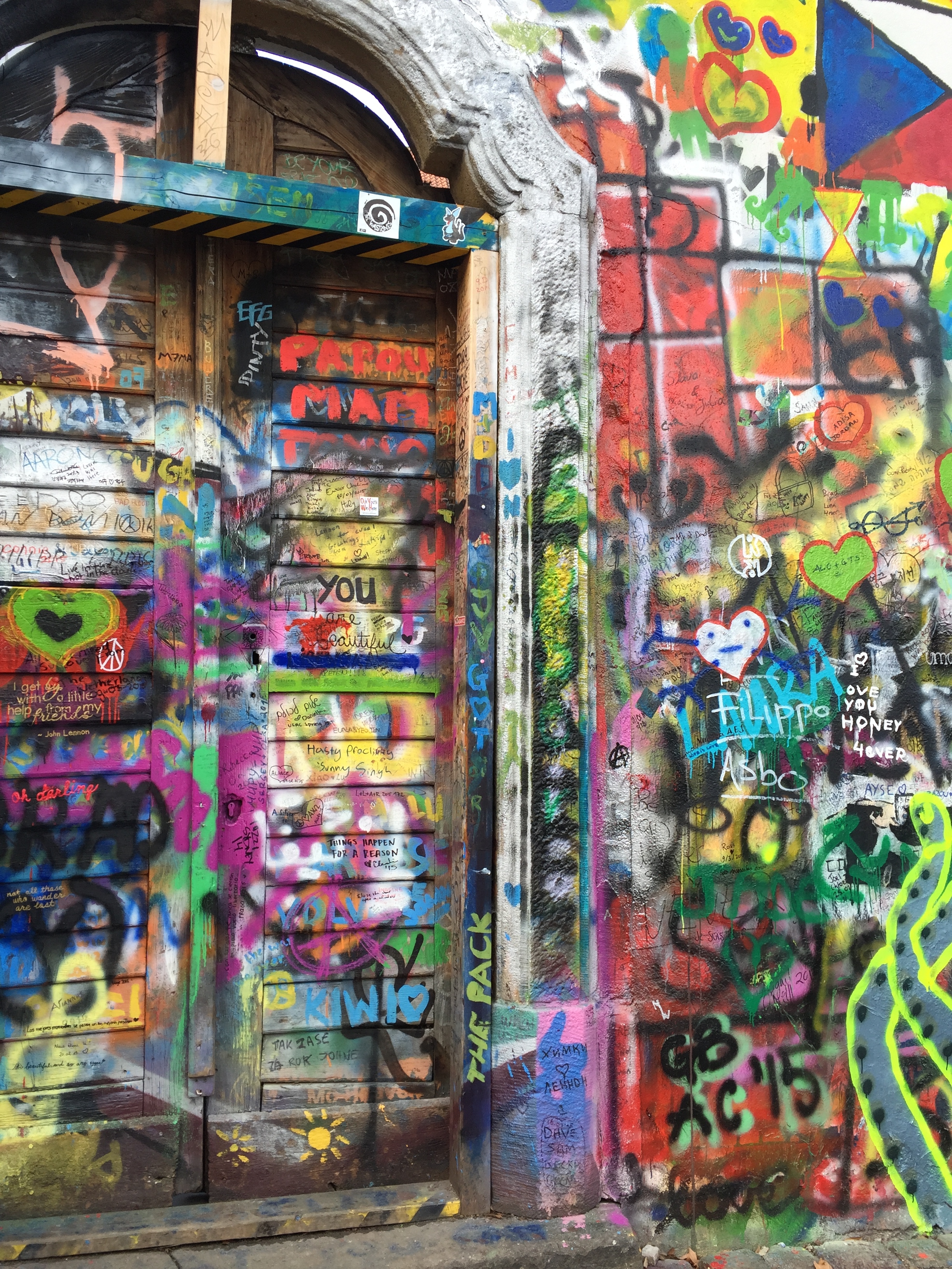 —strolling the Charles Bridge which was built in the 1300s… looking at the beautiful views and statues while headed to see the John Lennon wall (finding some inspiration I needed to read there)