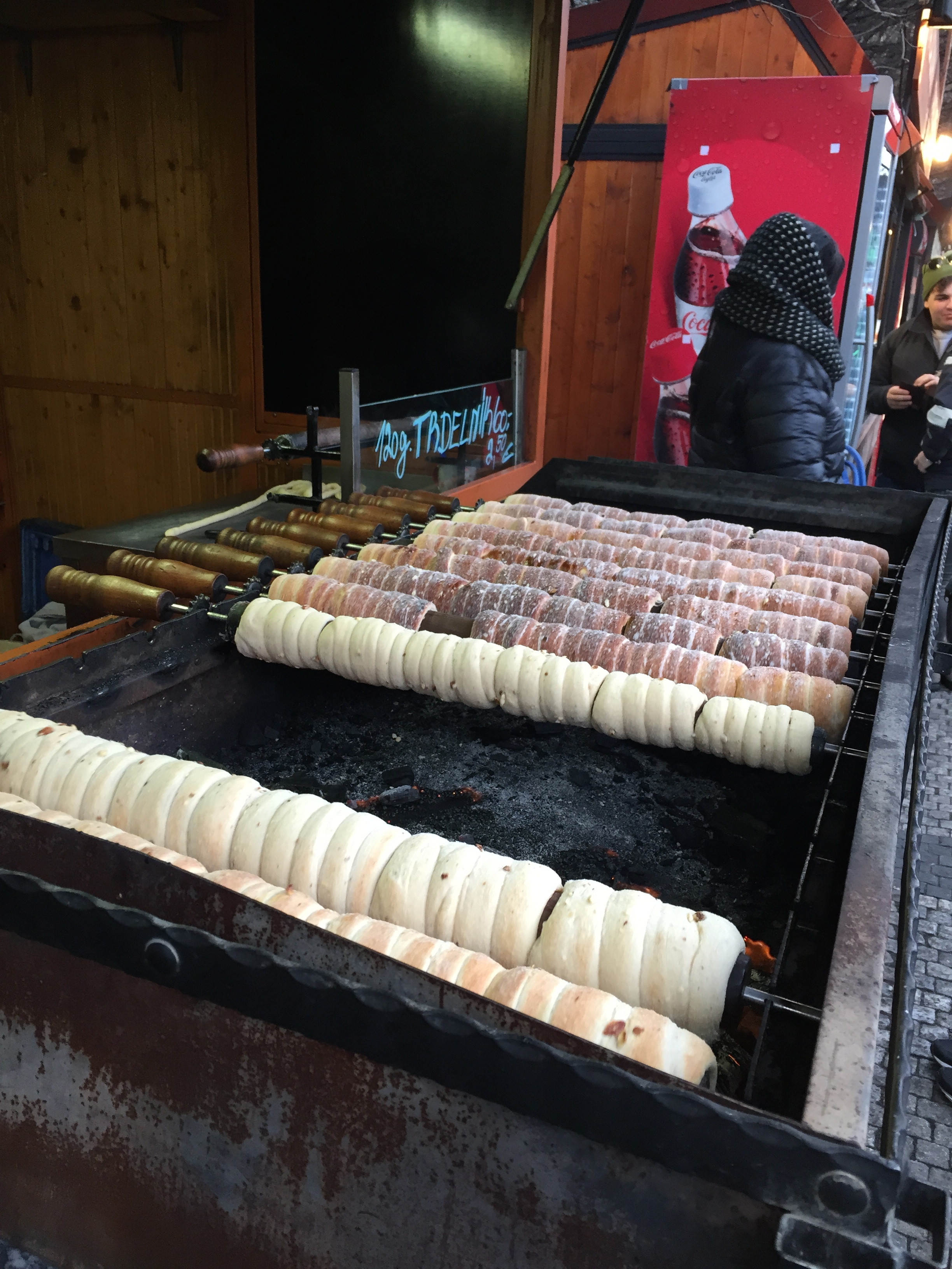 Trdelnik: dough wrapped on a cylinder and cooked over an open flame then rolled in cinnamon (I ate it everyday)