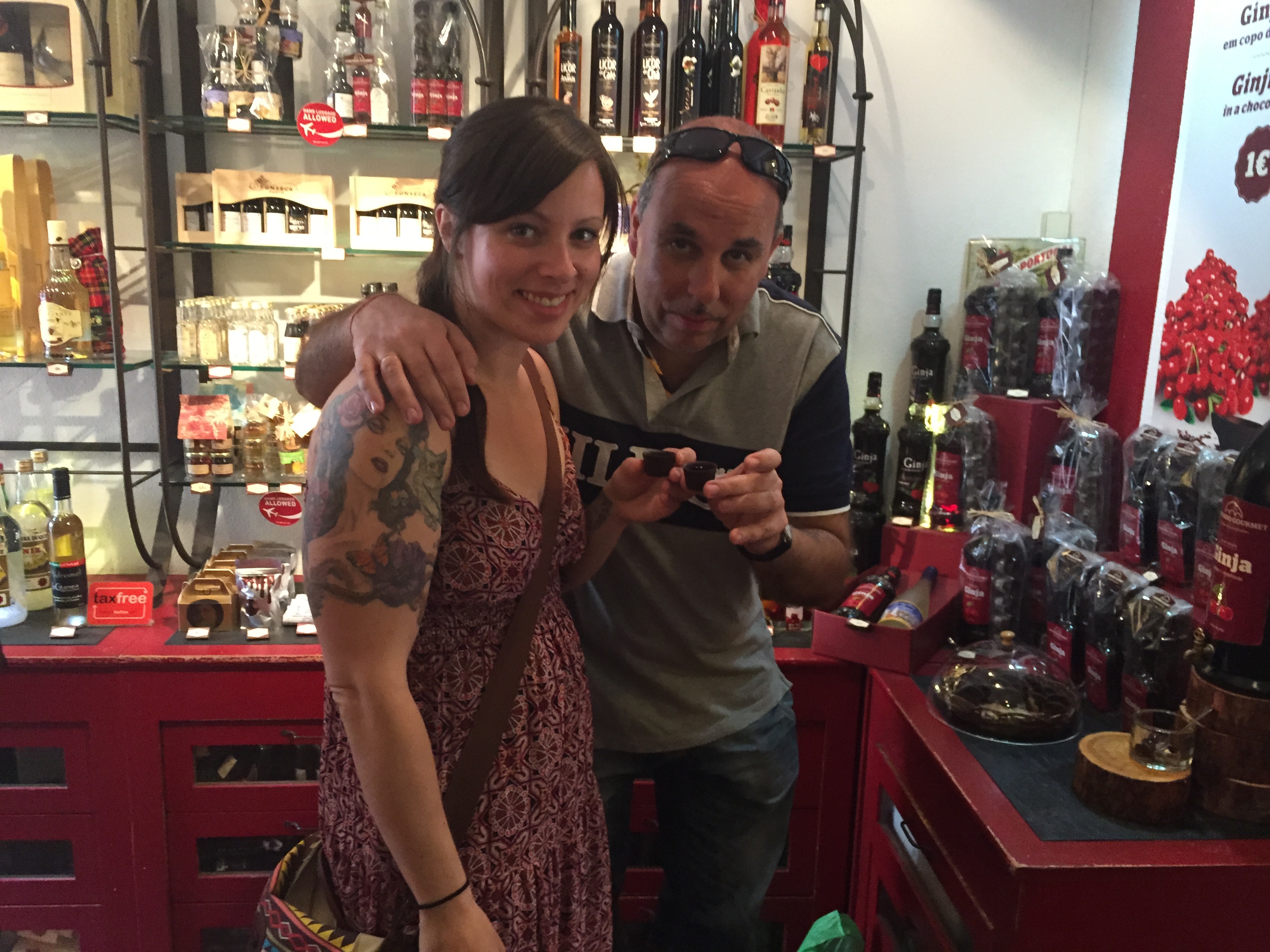 ginja, sour cherry liquor in a chocolate cup / shot that you ate afterward