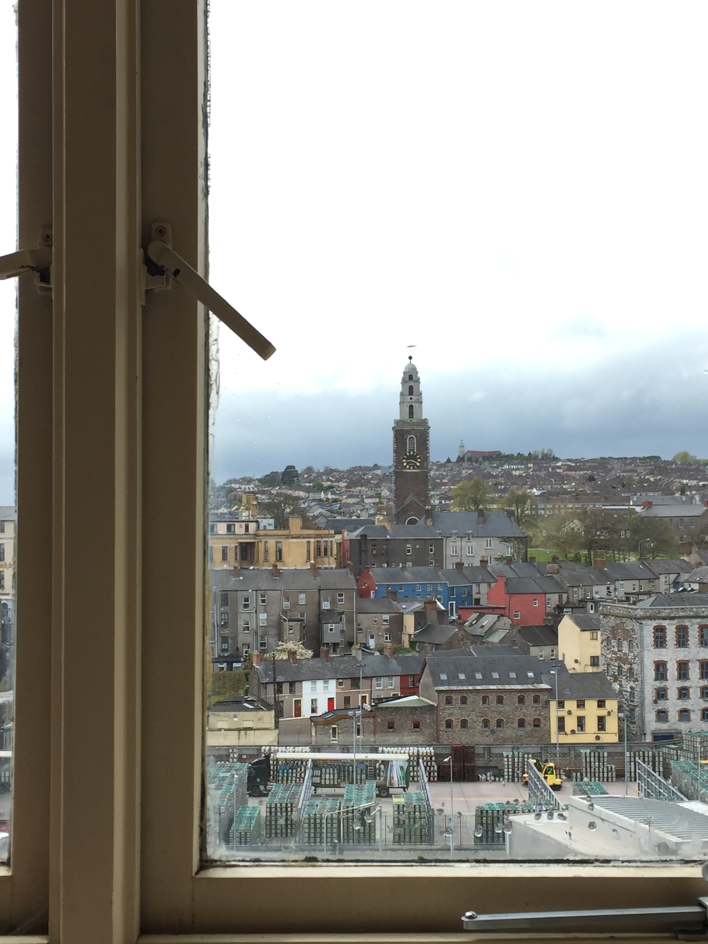 -Working in the afternoon with a view of the Shandon tower and the city of Cork in front of me.